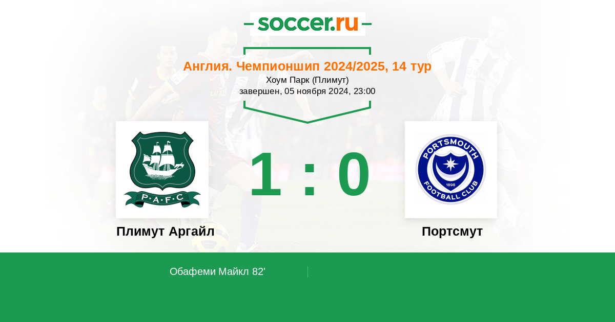 Плимут Аргайл 1:0 Портсмут
