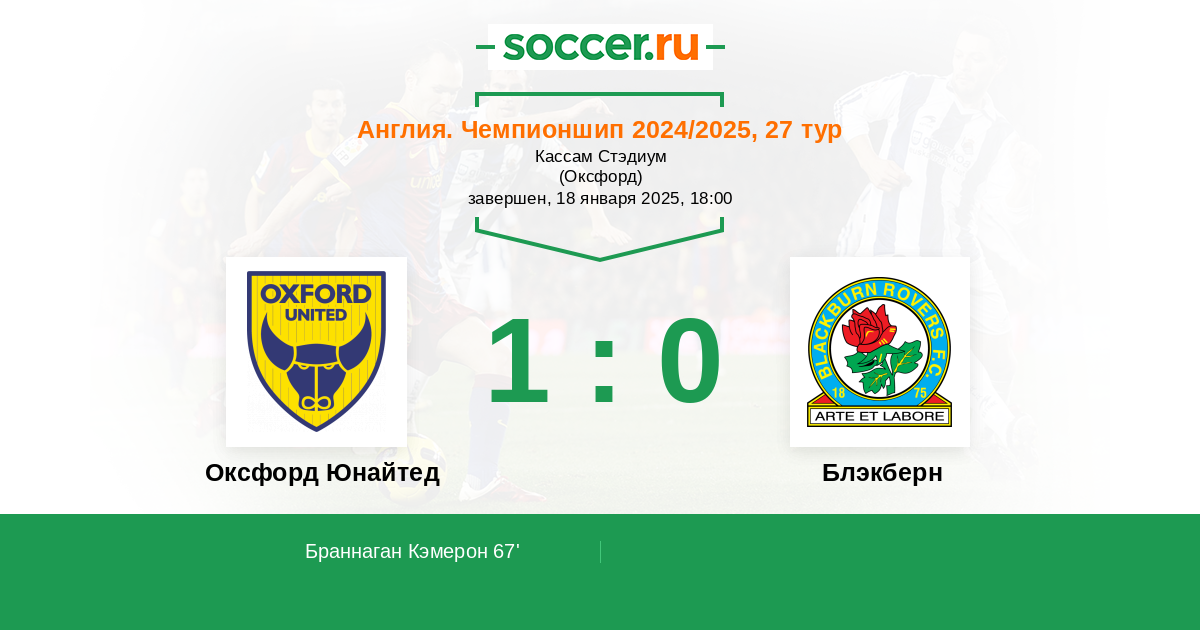 | Оксфорд Юнайтед | Блэкберн | |
