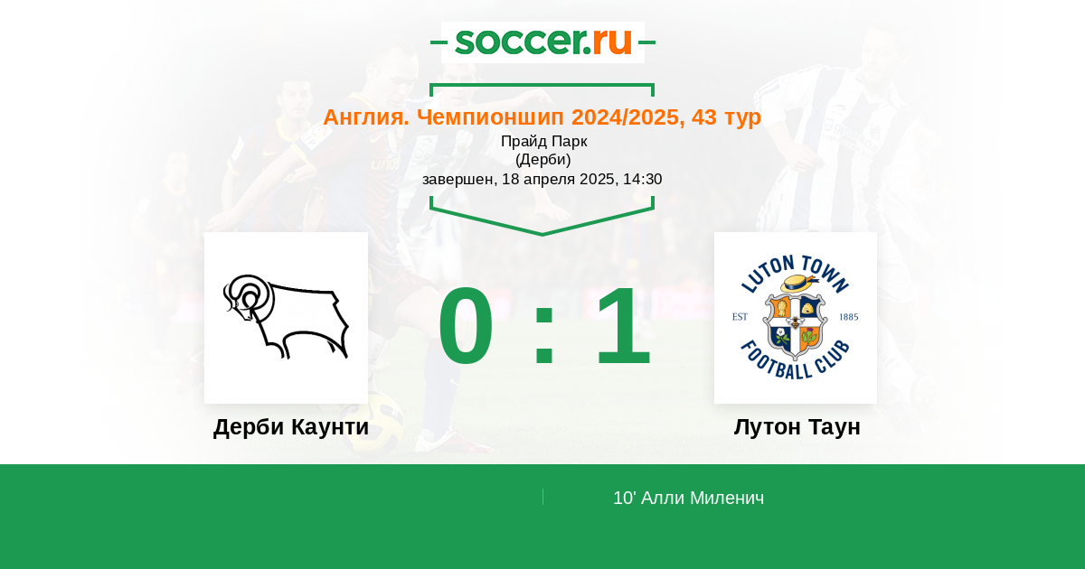 | Дерби Каунти | 30:30 | 21:10 | 9:20 |