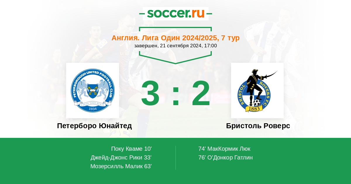 | Петерборо Юнайтед | Бристоль Роверс | |