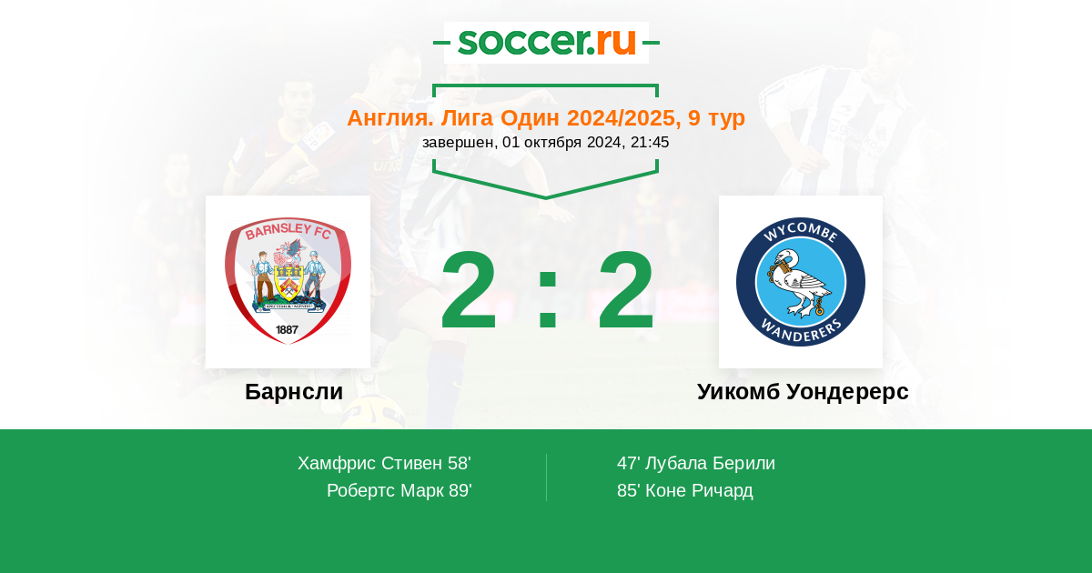 | Барнсли | 21:18 | 6:7 | 15:11 |