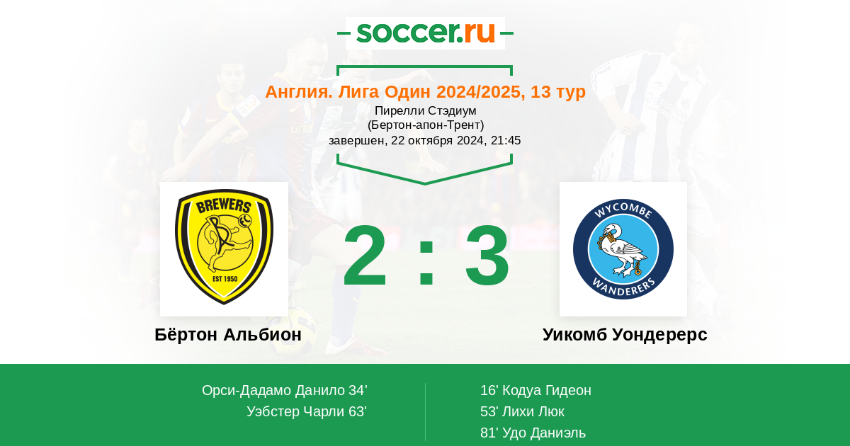| Бёртон Альбион | Уикомб Уондерерс | |