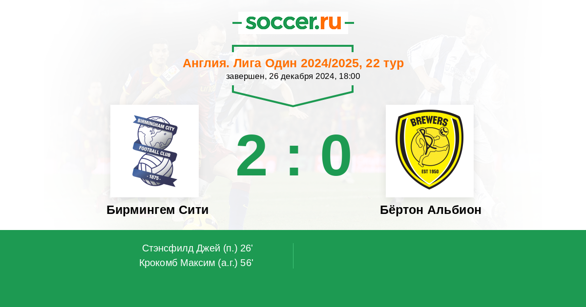 | Бирмингем Сити | Бёртон Альбион | |
