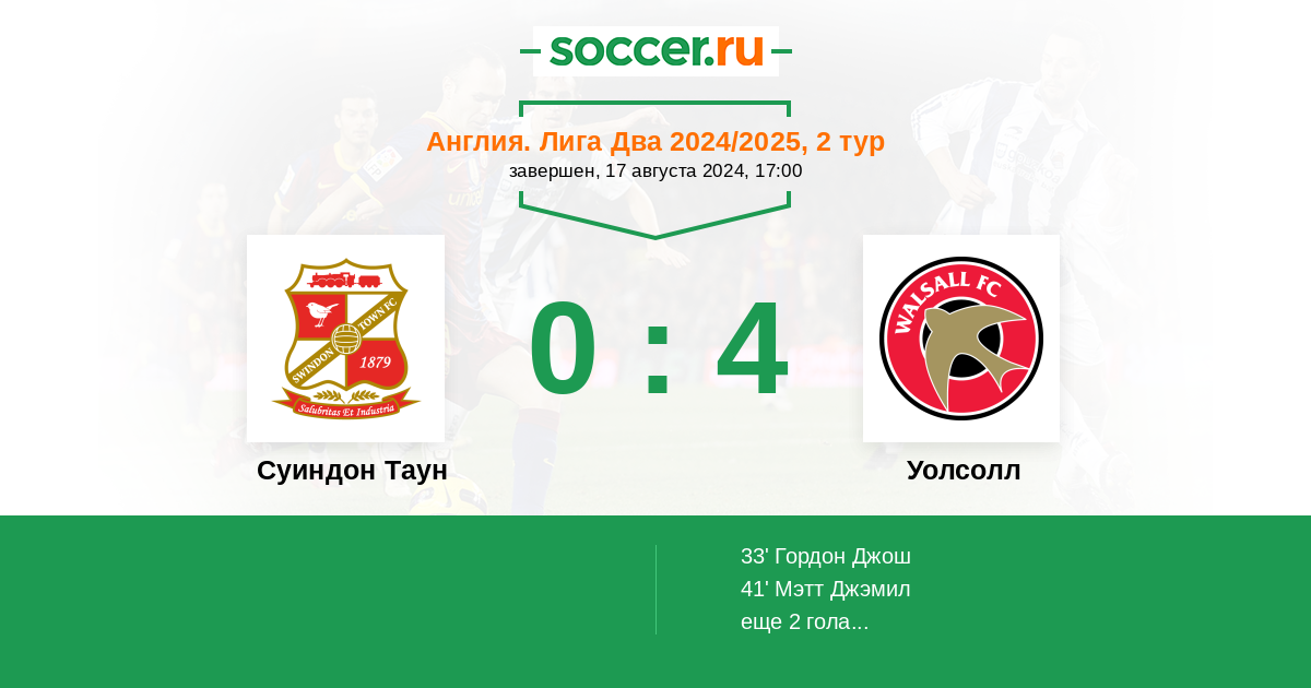 | Суиндон Таун | 54:51 | 28:29 | 26:22 |