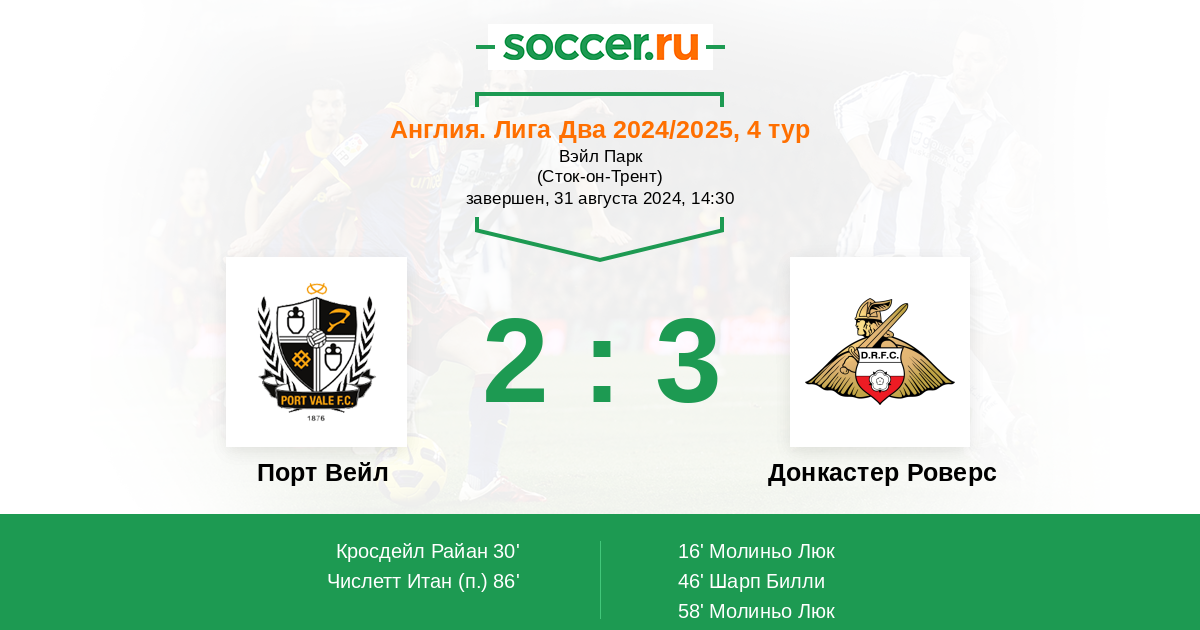 | Порт Вейл | Донкастер Роверс | |