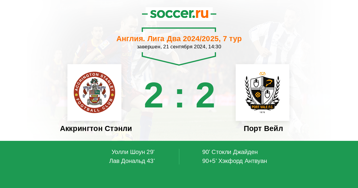 | Аккрингтон Стэнли | Порт Вейл | |