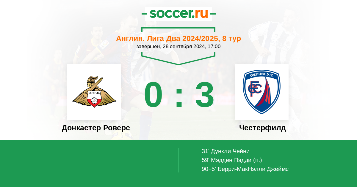 | Донкастер Роверс | Честерфилд | |