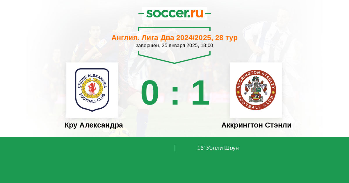 | Аккрингтон Стэнли | 25:31 | 17:16 | 8:15 |