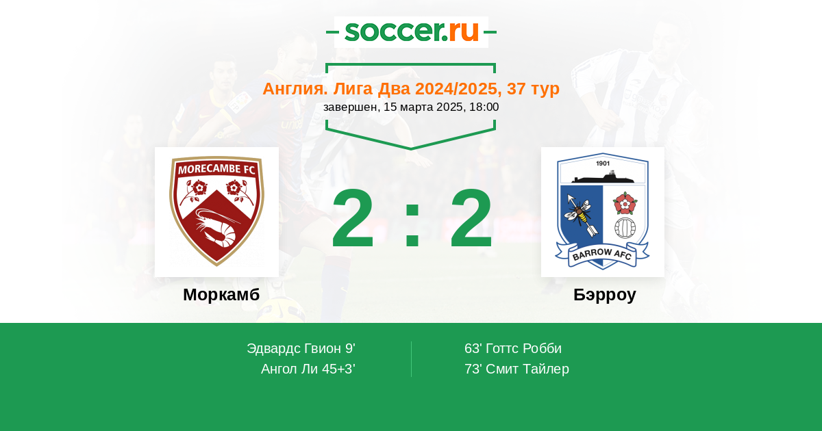 | Моркамб | 6:3 | 3:1 | 3:2 |