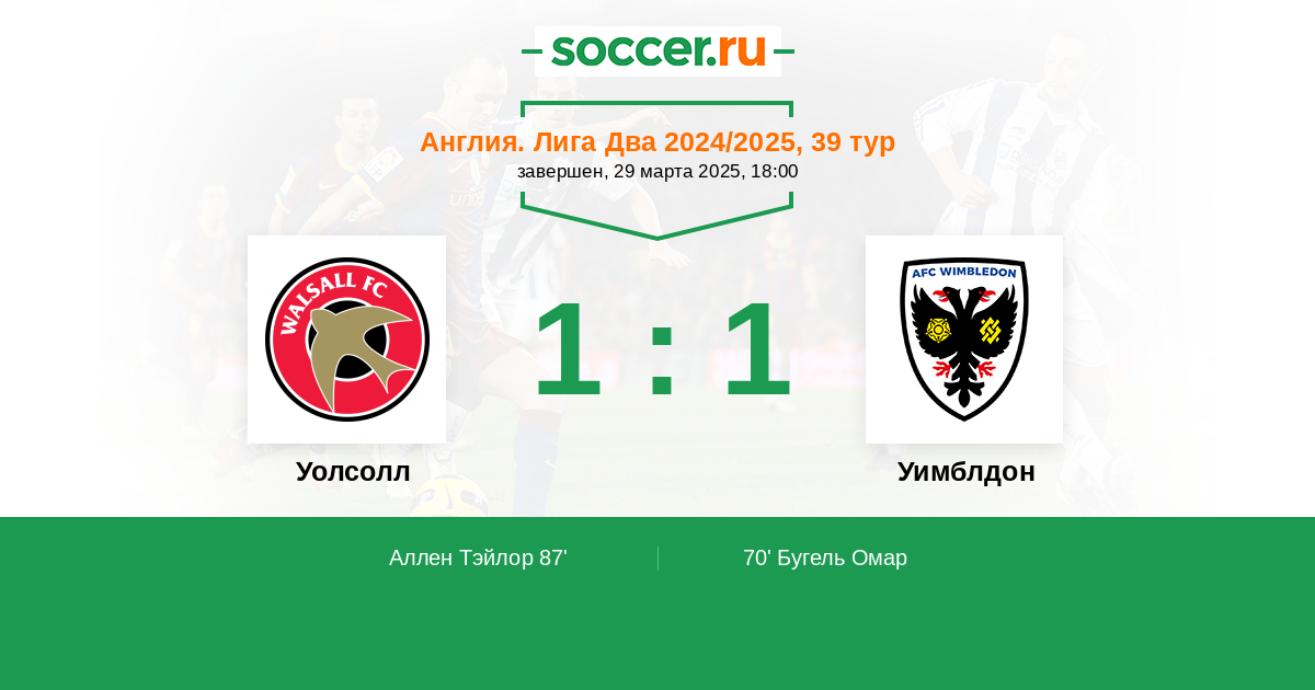 | Уолсолл | Уимблдон | |