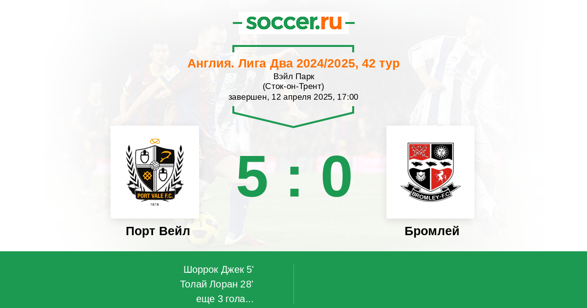 Последние 5 игр дома Порт Вейл