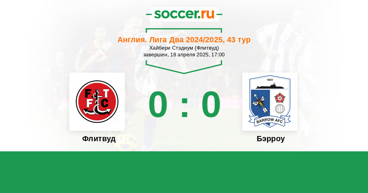 | Флитвуд | 1:2 | 0:0 | 1:2 |