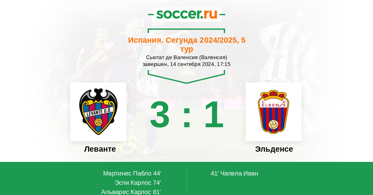 | Леванте | 4:1 | 2:0 | 2:1 |