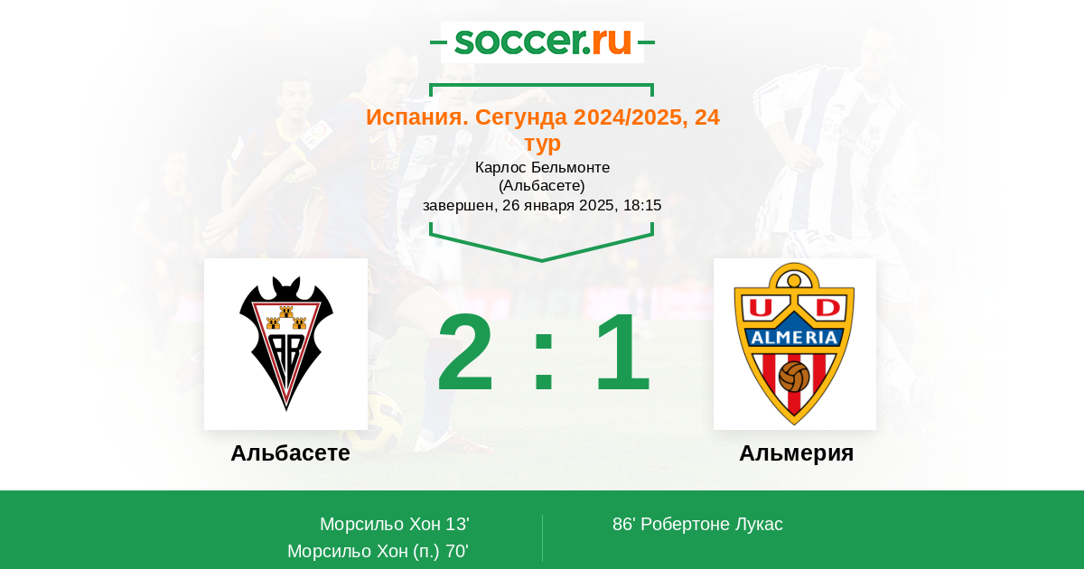 | Альбасете | 24:29 | 12:8 | 12:21 |