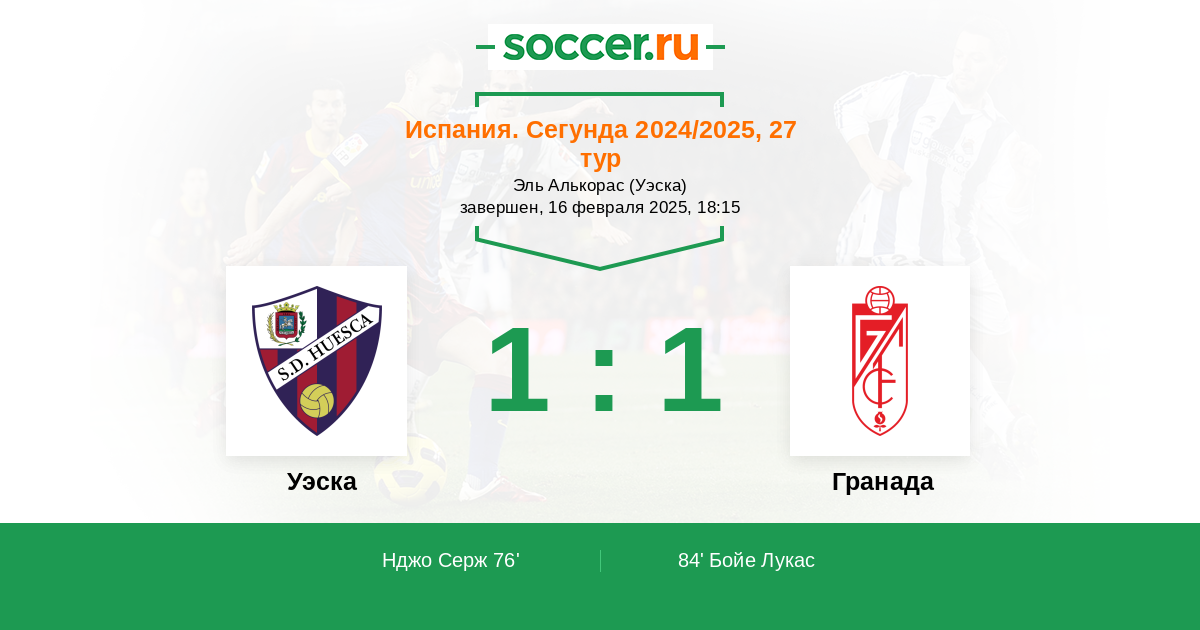 | Уэска | 12:13 | 6:5 | 6:8 |