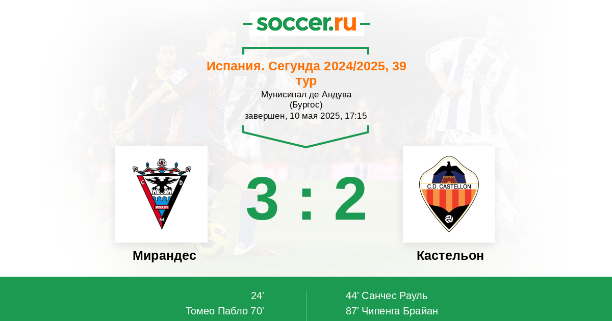 | Мирандес | 6:5 | 1:1 | 5:4 |