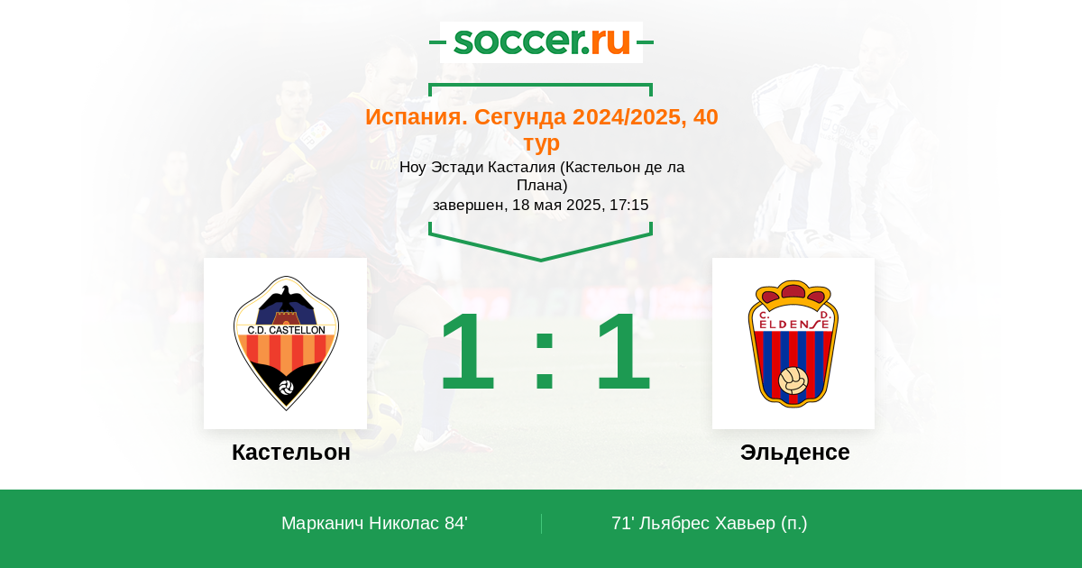 | Кастельон | 3:2 | 0:0 | 3:2 |