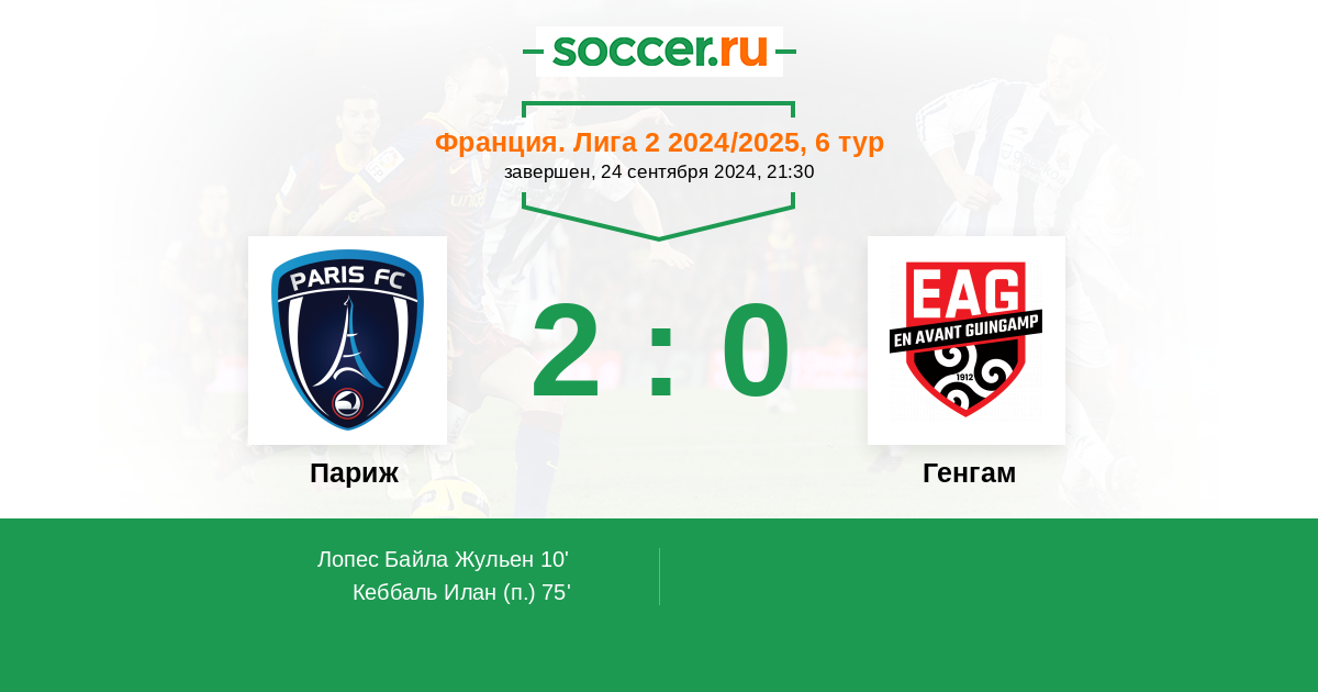| Франция. Лига 2 | 10 | 4 | 3 | 3 |