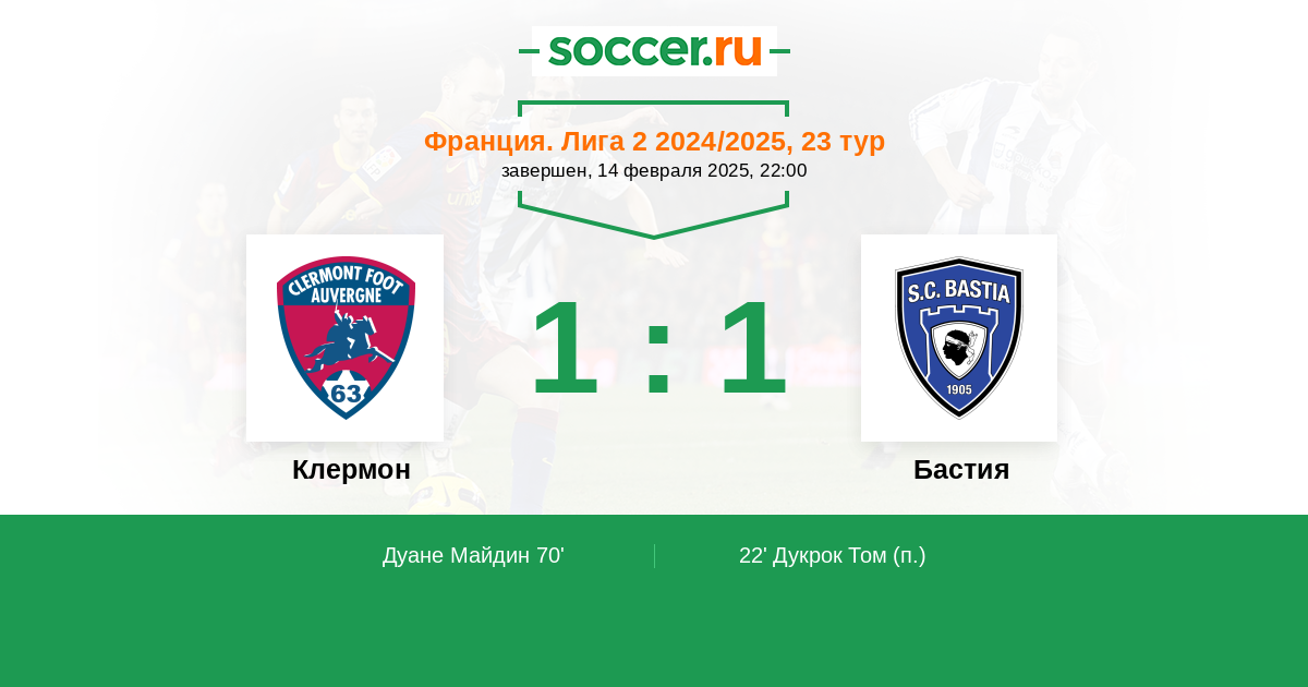 | Клермон | Бастия | |
