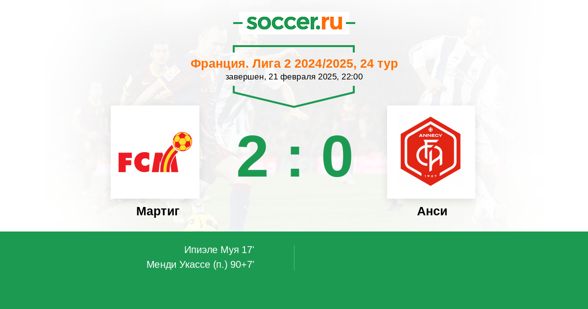 | Мартиг | 4:2 | 0:0 | 4:2 |