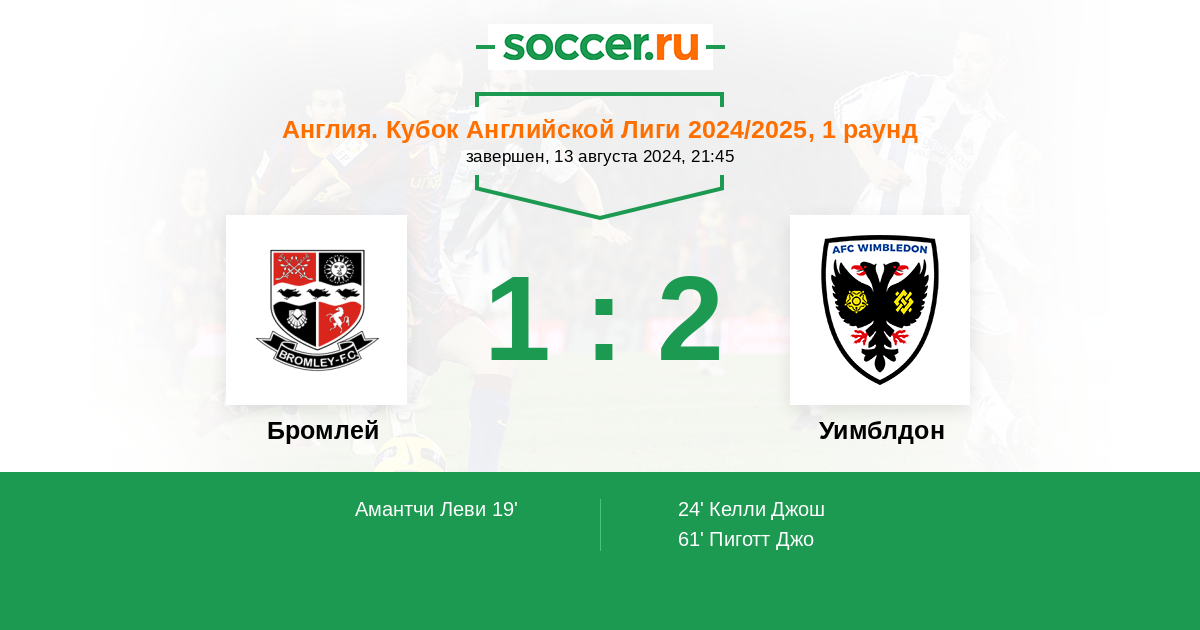 | Бромлей | 3:0 | 2:0 | 1:0 |