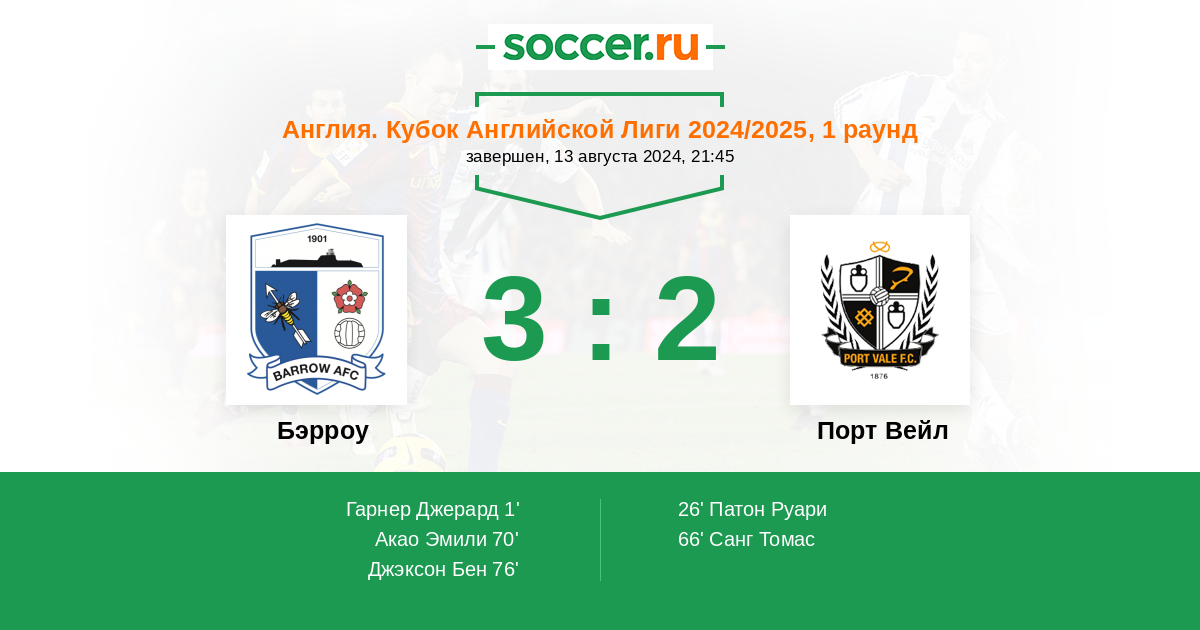Последние 5 игр на выезде Бэрроу