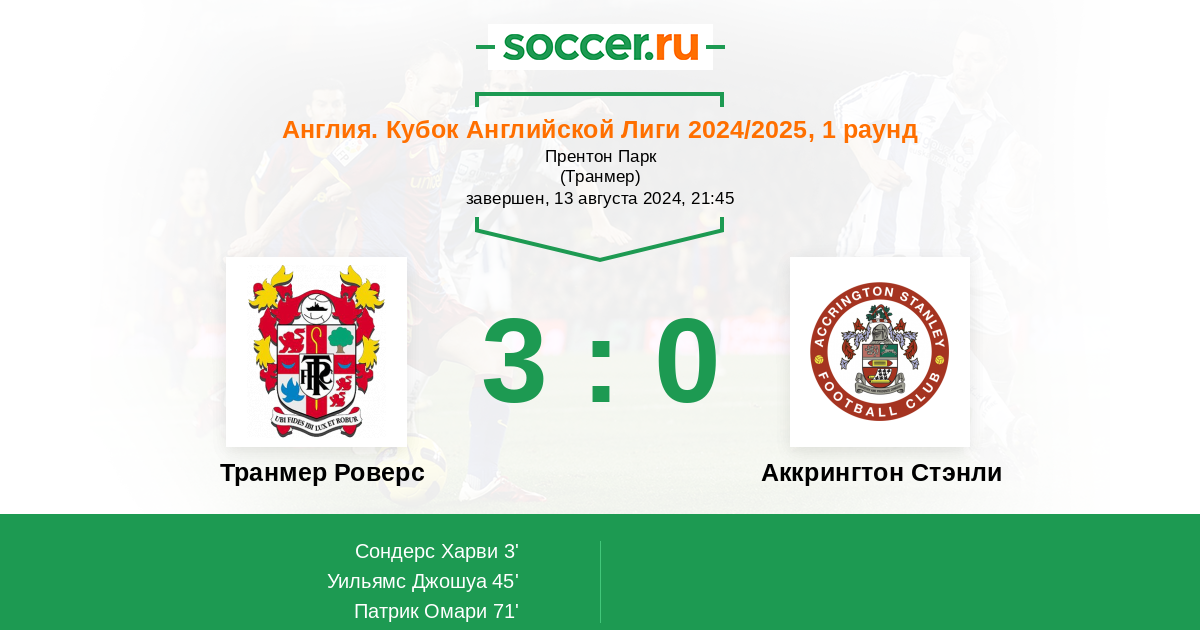 | Транмер Роверс | Аккрингтон Стэнли | |