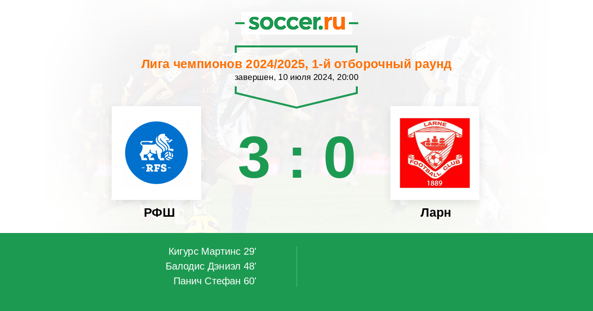 | Ларн | 0:4 | 0:4 | 0:0 |