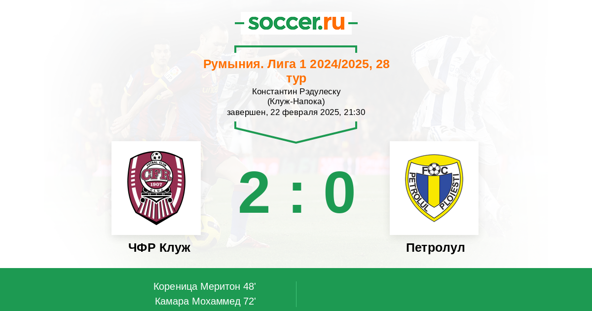 | ЧФР Клуж | 10:6 | 3:0 | 7:6 |