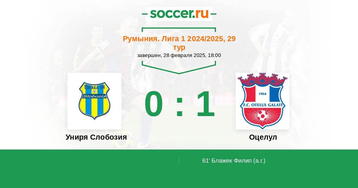 | Униря Слобозия | 3:5 | 1:0 | 2:5 |