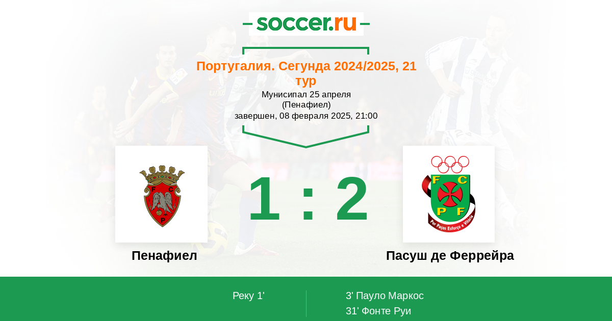 | Пасуш де Феррейра | 22:21 | 13:10 | 9:11 |