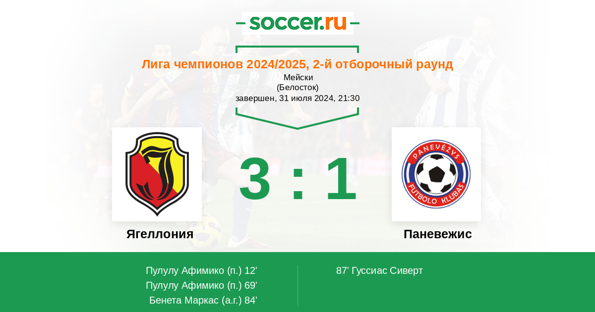 | Ягеллония | 4:0 | 0:0 | 4:0 |