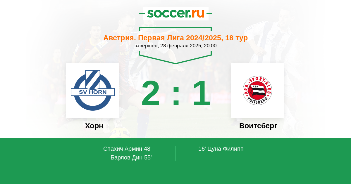 | Хорн | 2:0 | 0:0 | 2:0 |