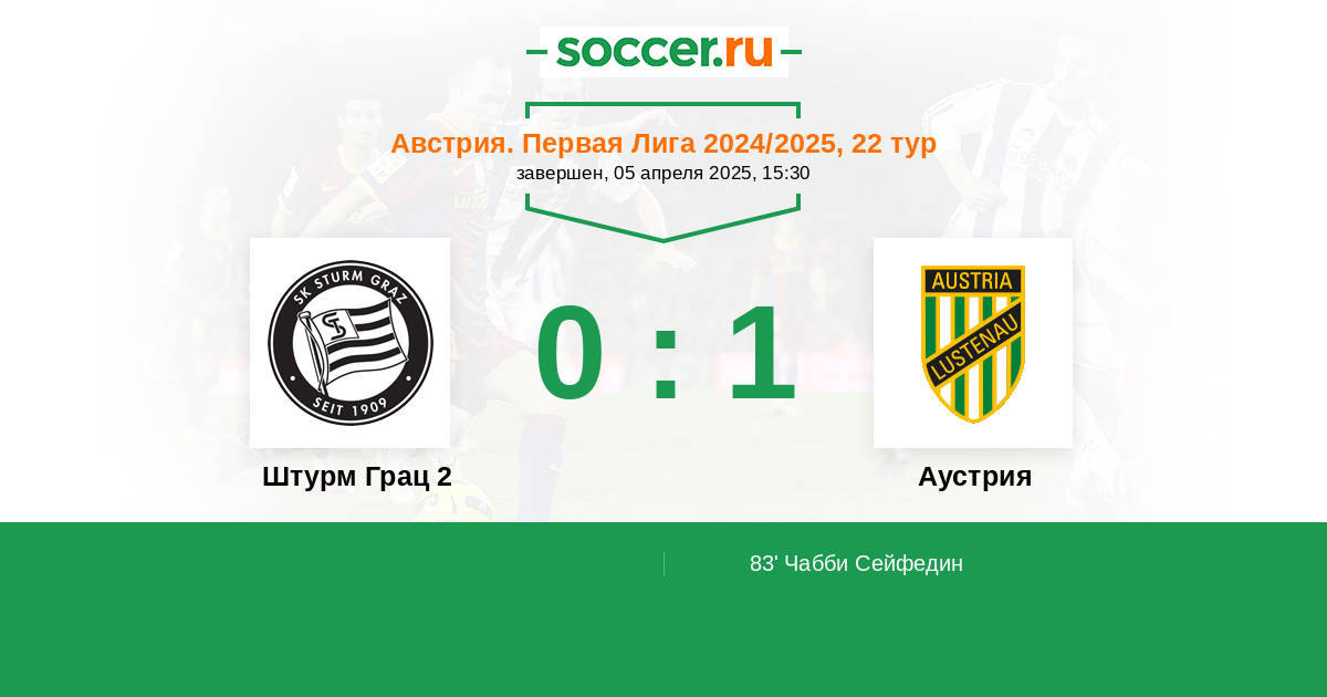 | Штурм Грац 2 | 1:2 | 0:0 | 1:2 |