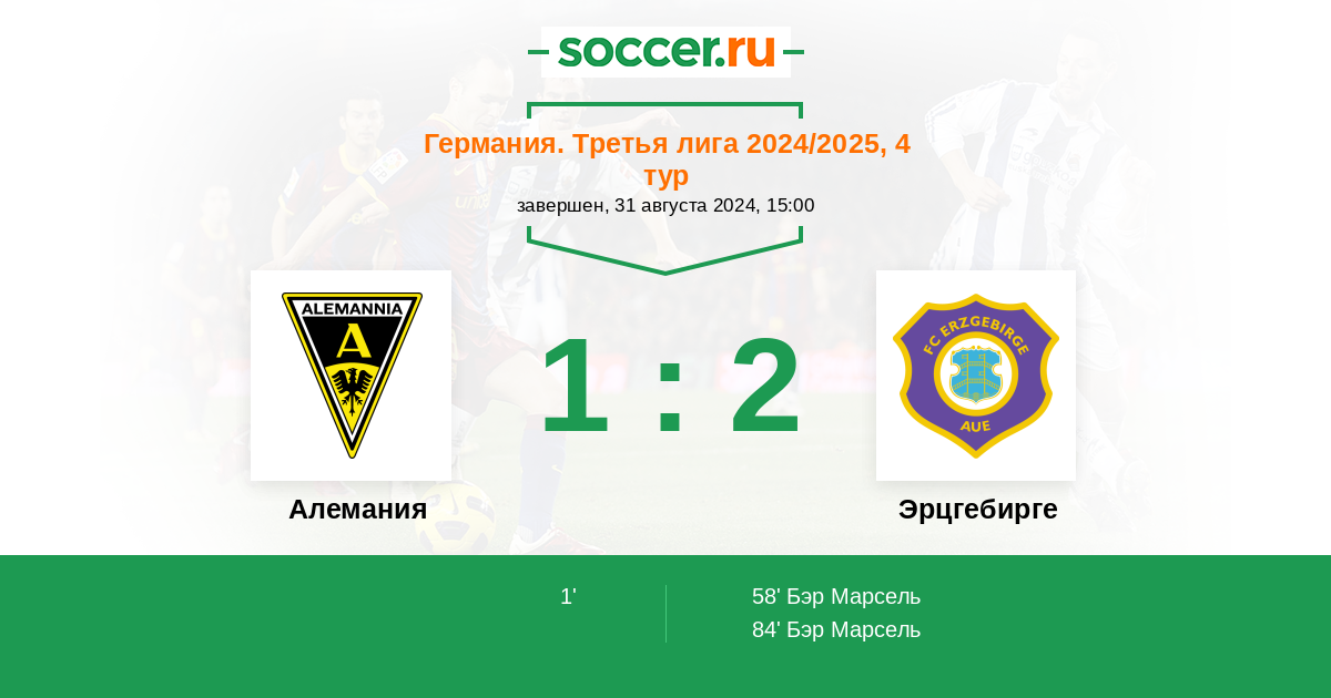 | Германия. Третья лига | 2 | 0 | 1 | 1 |