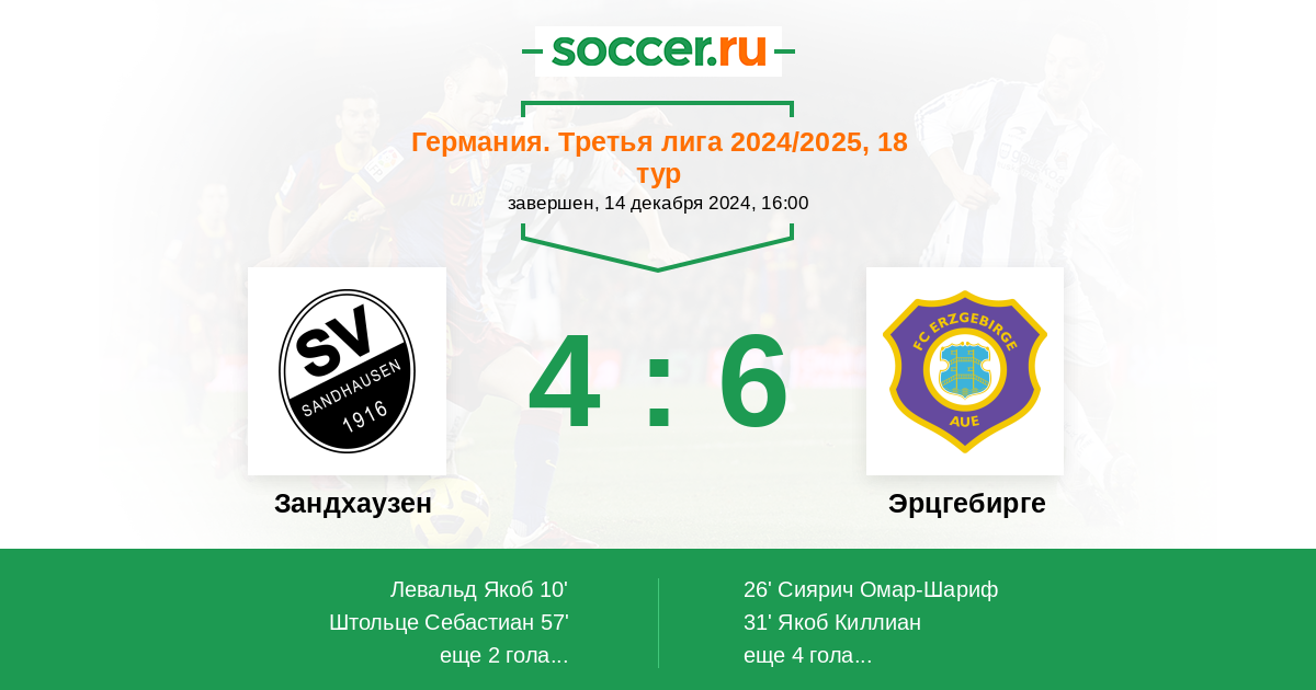 | Германия. Бундеслига 2 | 18 | 6 | 8 | 4 |