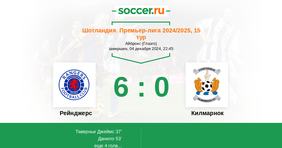 | Килмарнок | 47:137 | 31:55 | 16:82 |