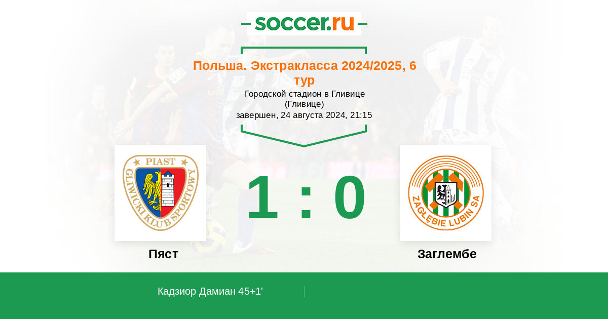 | Пяст | 42:35 | 20:13 | 22:22 |