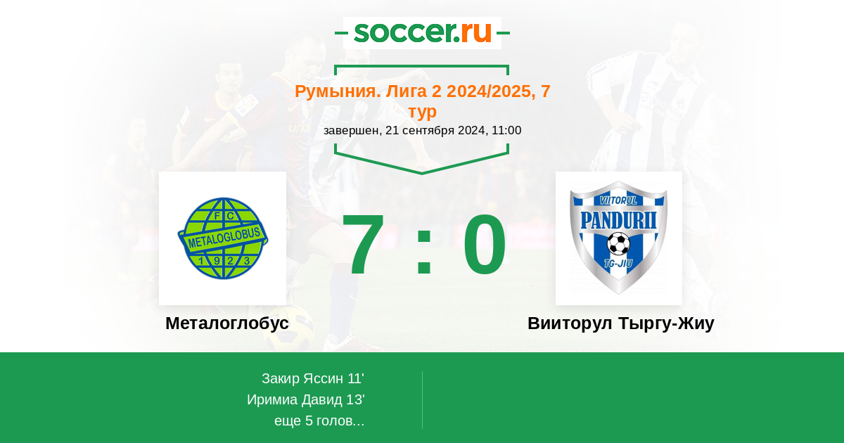 | Металоглобус | Вииторул Тыргу-Жиу | |