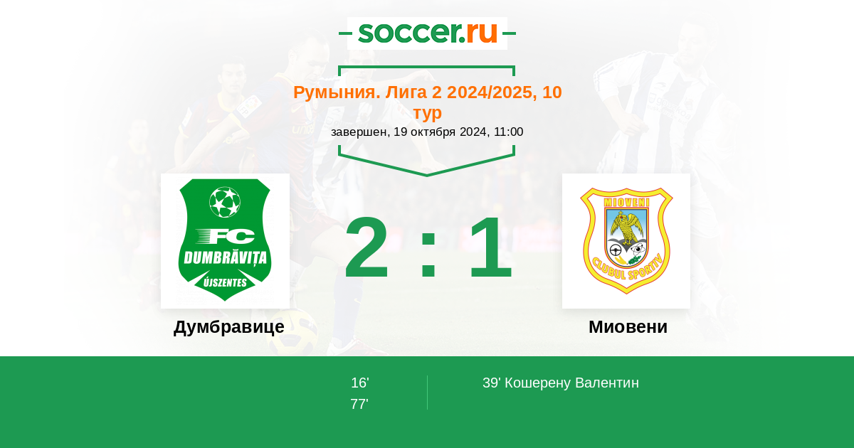 | Румыния. Лига 2 | 1 | 1 | 0 | 0 |