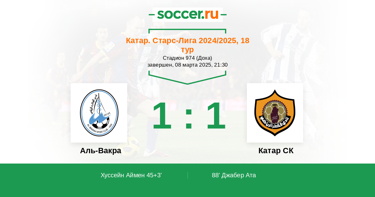 | Аль-Вакра | 49:51 | 27:33 | 22:18 |