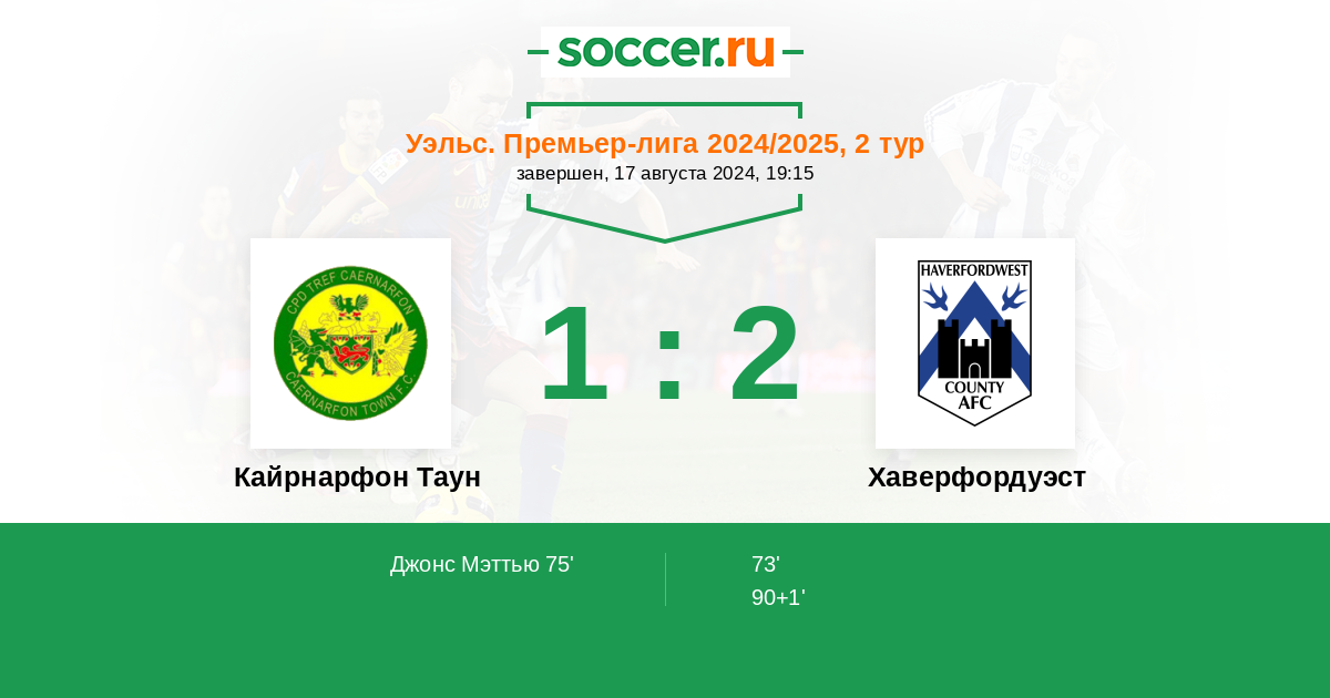 | Кайрнарфон Таун | 42:51 | 20:26 | 22:25 |