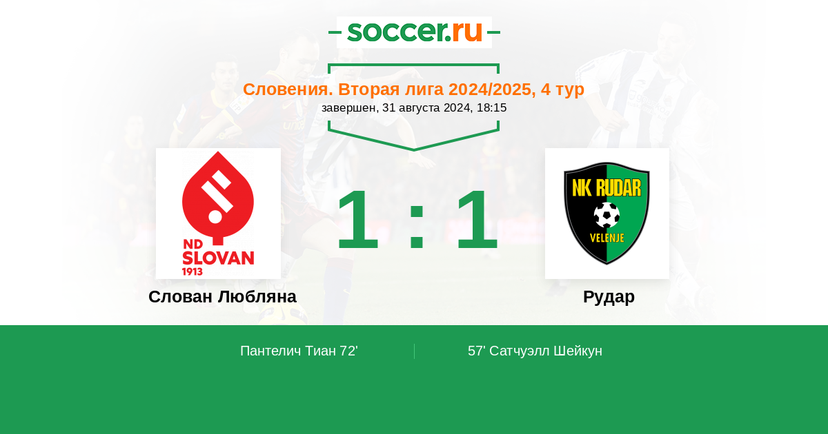 | Словения. Вторая лига | 2 | 1 | 1 | 0 |