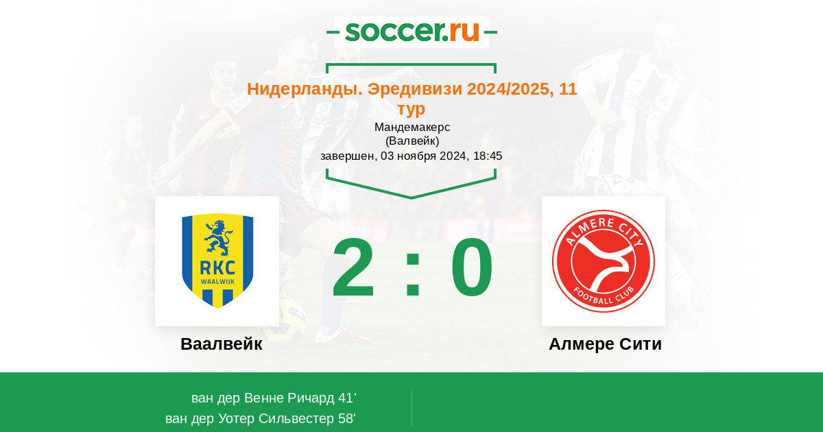 | Ваалвейк | Алмере Сити | |
