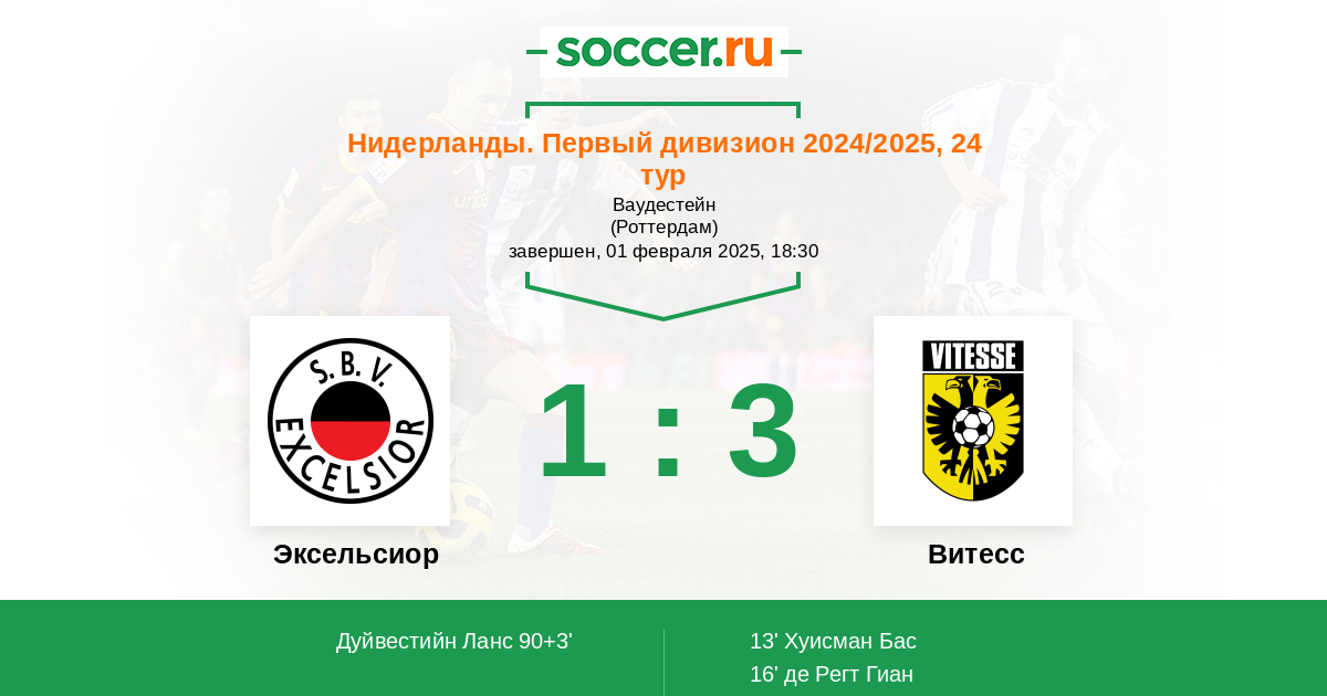 | Витесс | 45:34 | 20:19 | 25:15 |