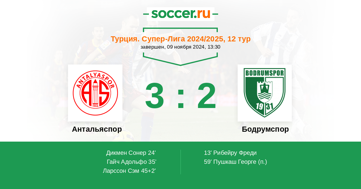 | Антальяспор | 1:3 | 0:0 | 1:3 |