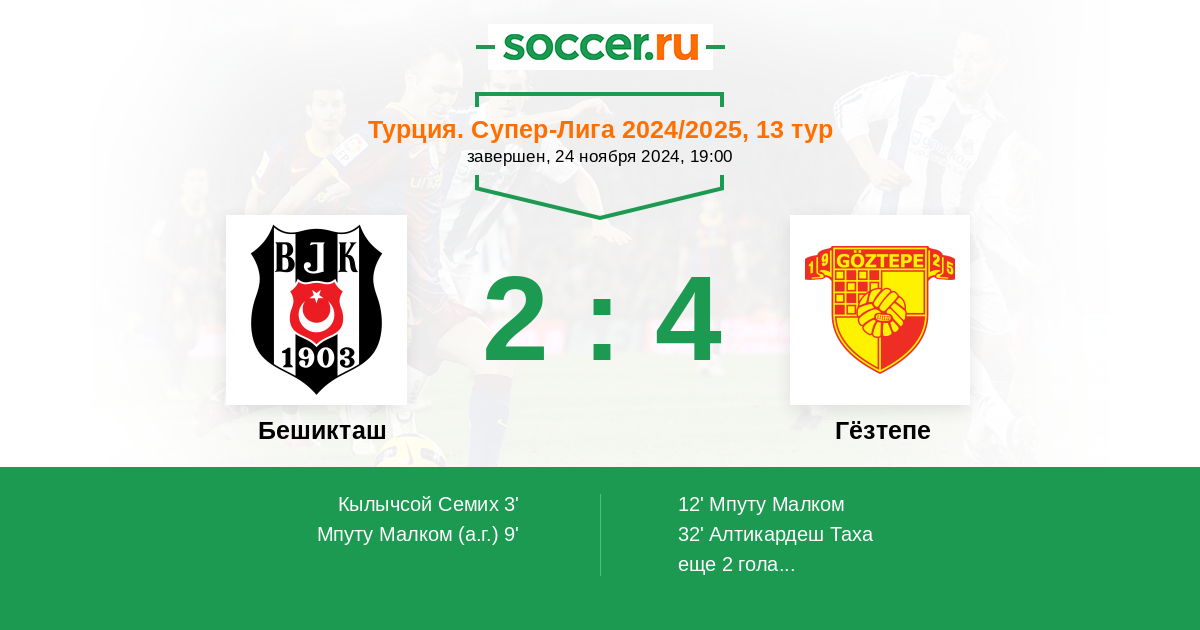 | Бешикташ | 46:26 | 24:12 | 22:14 |