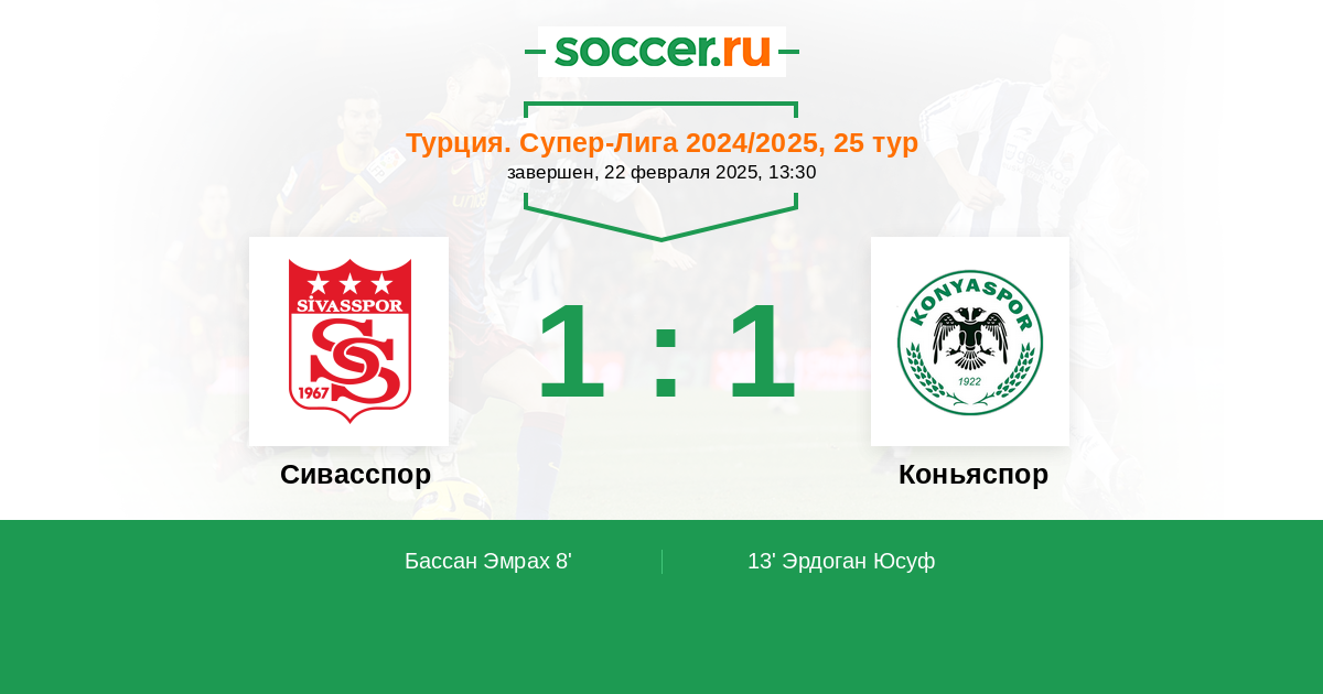 | Коньяспор | 42:40 | 31:17 | 11:23 |