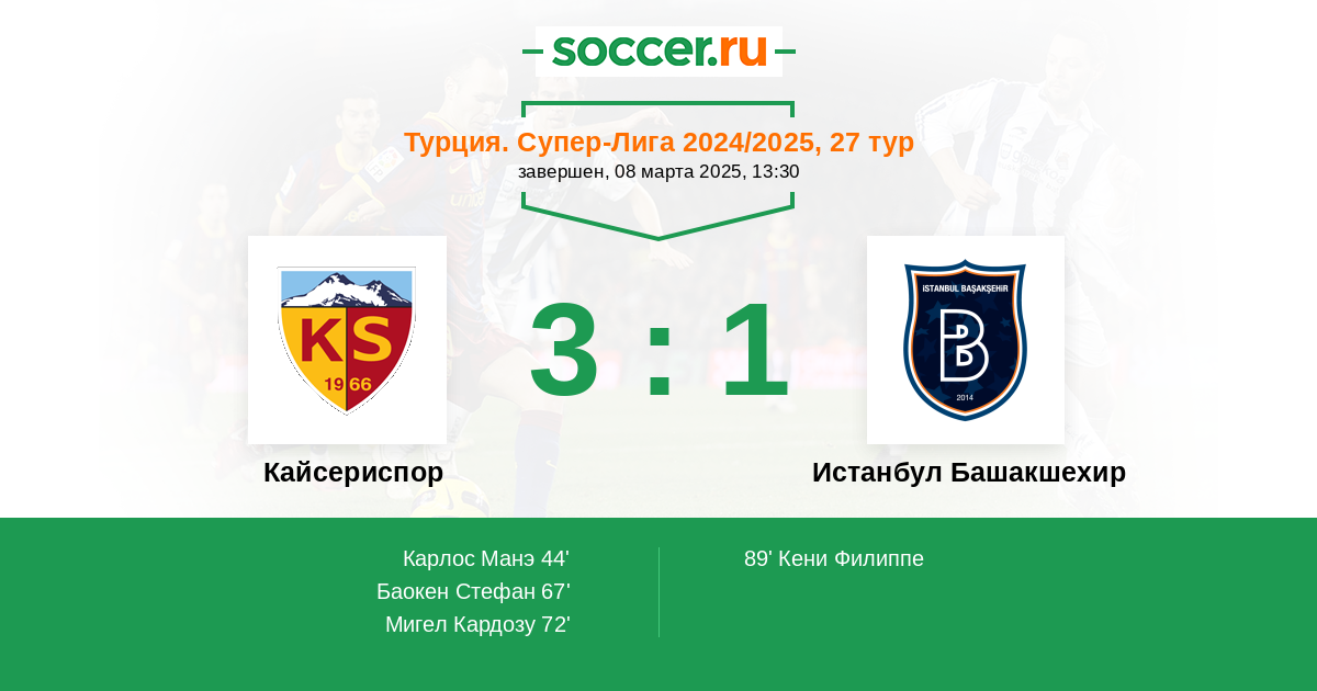 | Кайсериспор | Истанбул Башакшехир | |