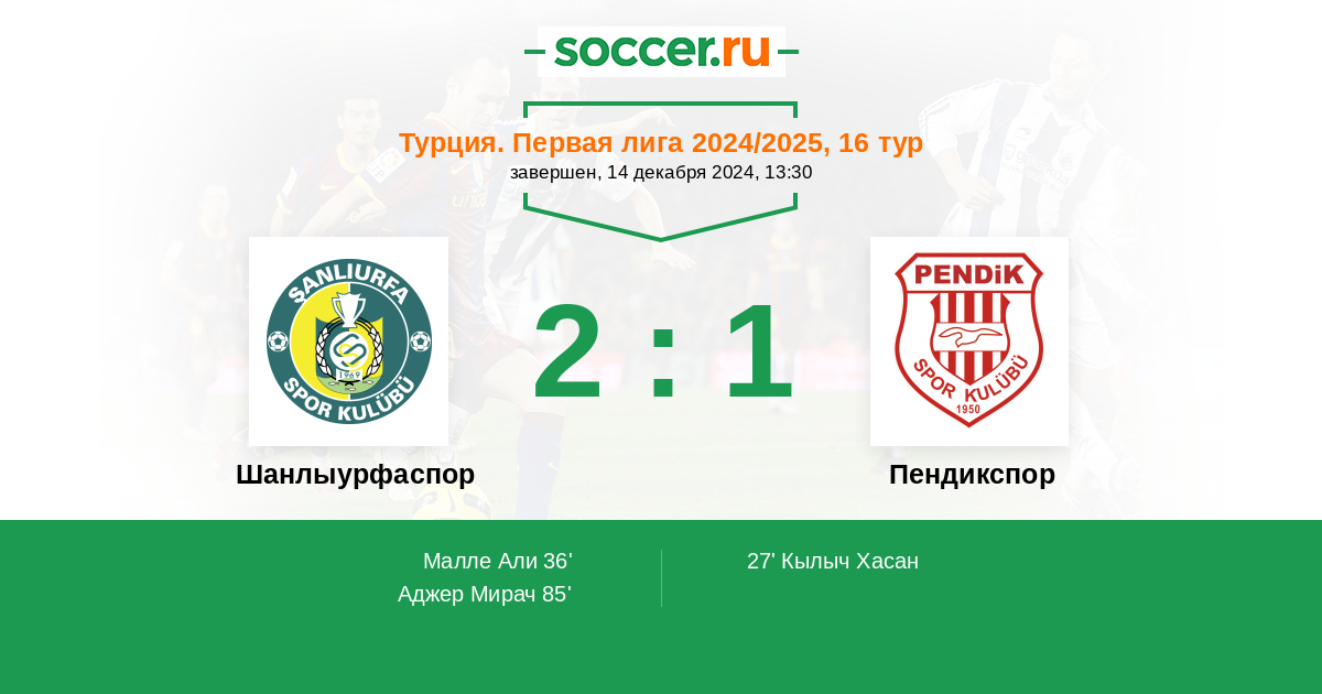 | Шанлыурфаспор | Пендикспор | |